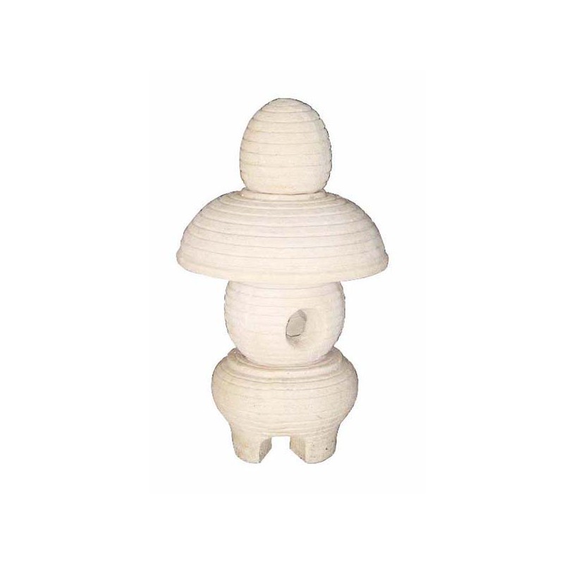 Reconstructed stone garden lamp, the lower part of witch is perforated, allowing the installation of an electrically powered equipment.