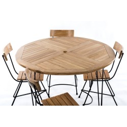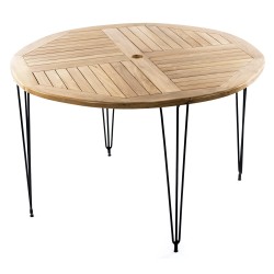 Round table in Teak and metal legs.