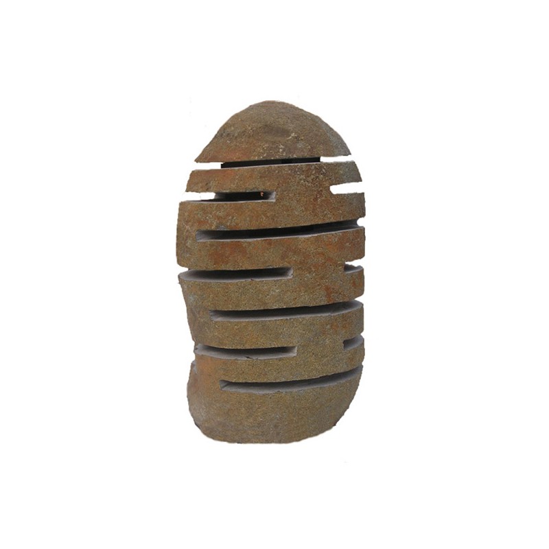 Réalisée à partir d'un galet de rivière, sculptée et ajourée afin de laisser passer la lumière.