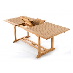 Table rectangulaire avec rallonge papillon et emplacement pour parasol.