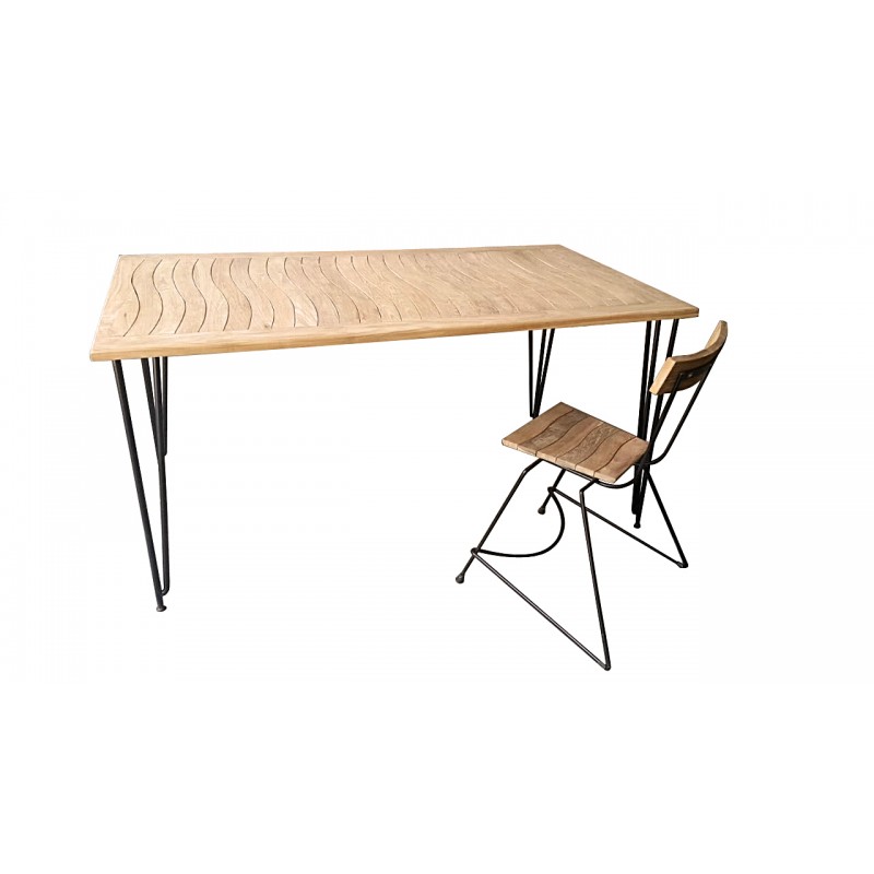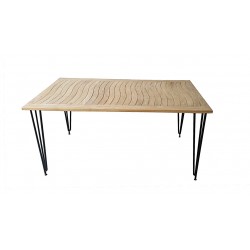 Table rectangulaire avec plateau en Teck et pieds en métal.